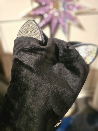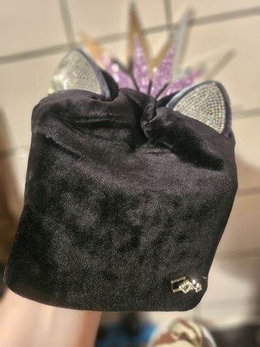 • Rhinestone cat ears give a fun, upgraded seasonal look