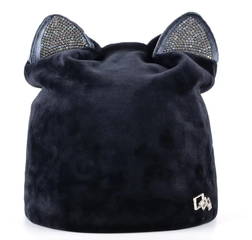 1 × Women’s Autumn Beanie With Rhinestone Cat Ears