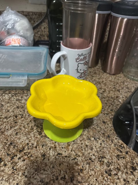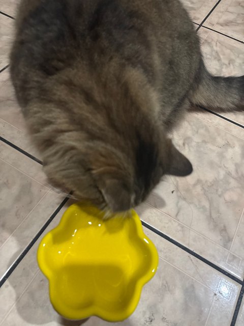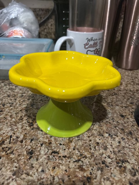 Super cute little ceramic cat food bowl. It’s not too heavy and the shallowness helps to avoid whisker fatigue. My cats approve. Highly recommend!