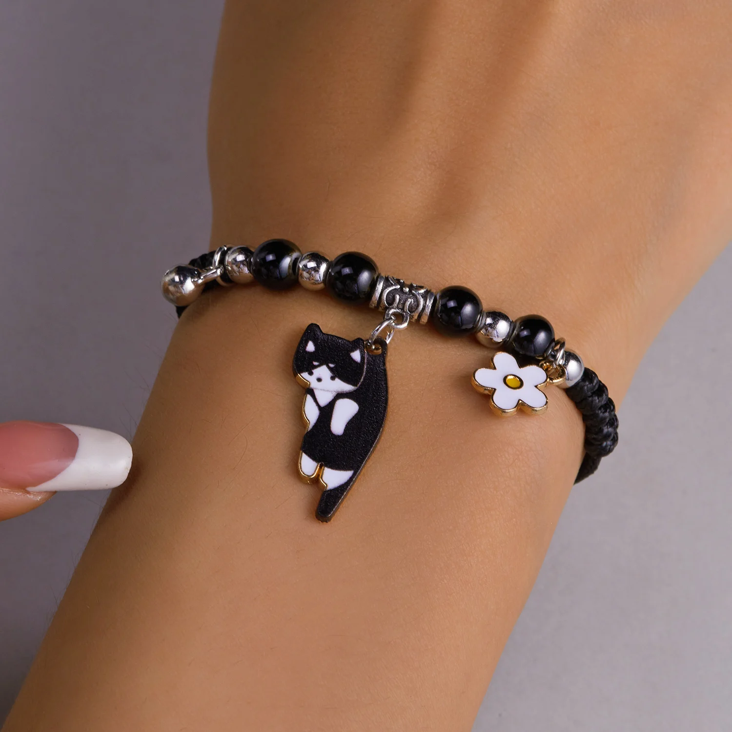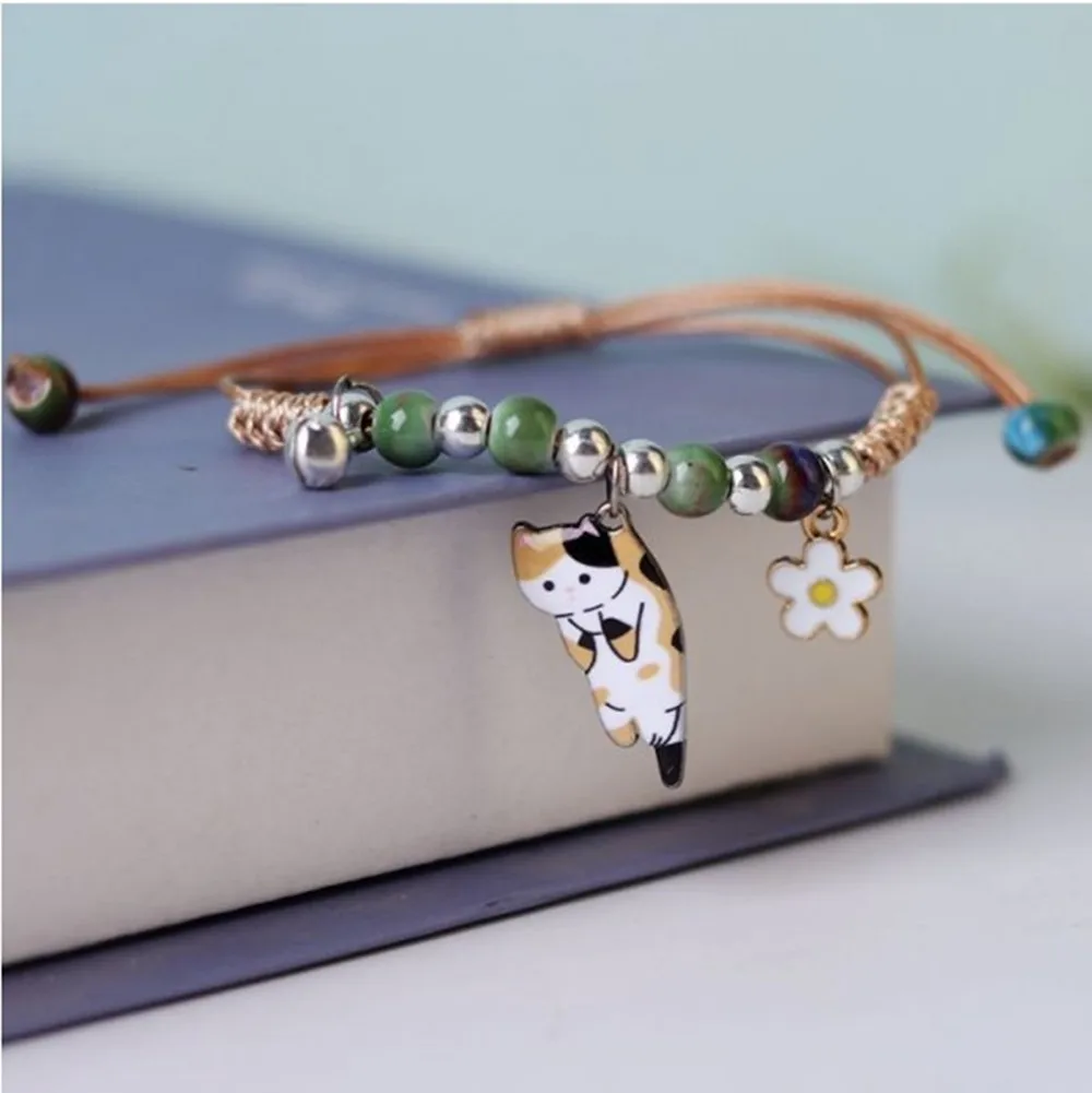 • The Cartoon Cat Flower Charm Bracelet adds a cute cat-themed touch to any outfit