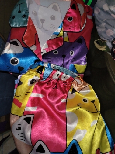 • The Colorful Cat Print Satin Pajama Set adds fun and personality to bedtime