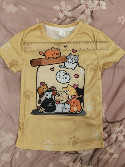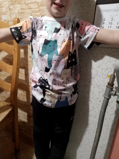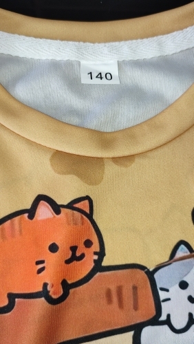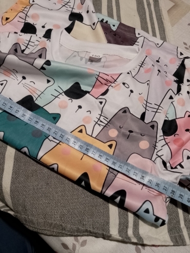 this is 150, my son wears Polish 134. slightly slippery blouse, clear colors. cat fan, enough for the season, the child is satisfied. the boy will wear it.