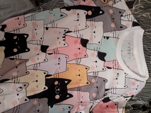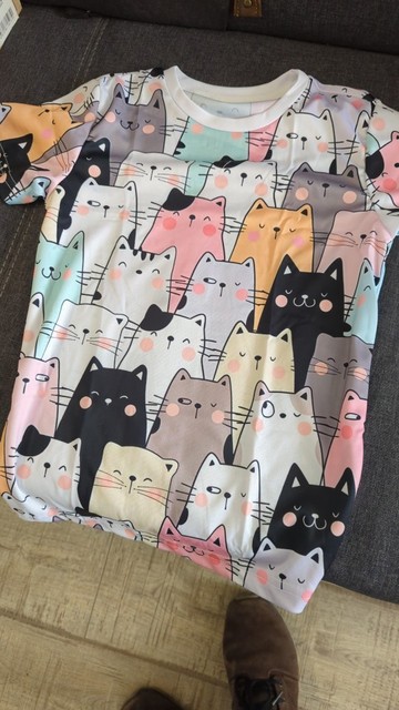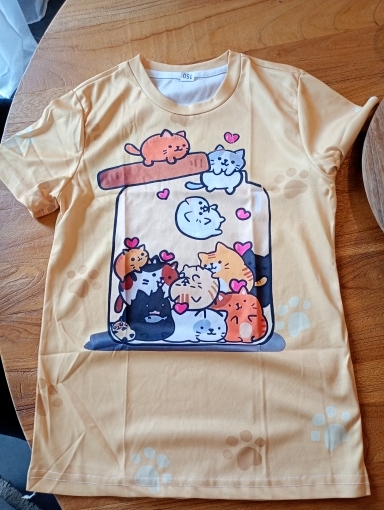The T-shirt is cute, but the fabric is synthetic, which does not allow air to pass through. The size matches the declared size (according to the size chart). Fast delivery, 10 days to Germany.