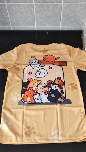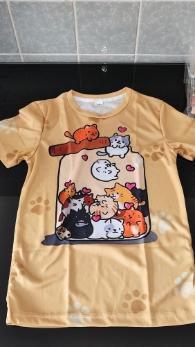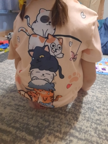 The Girls Cute Cartoon Cat T-Shirt – Kawaii Summer Top combines comfort, durability and cute design, making it a summer wardrobe favourite for young cat lovers.