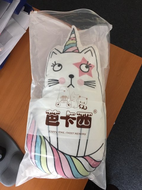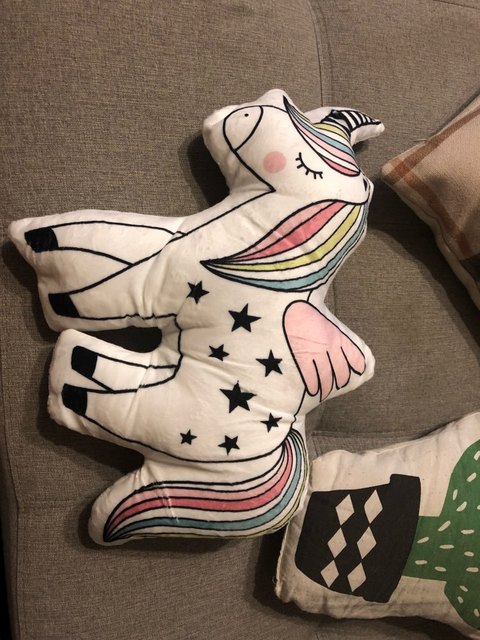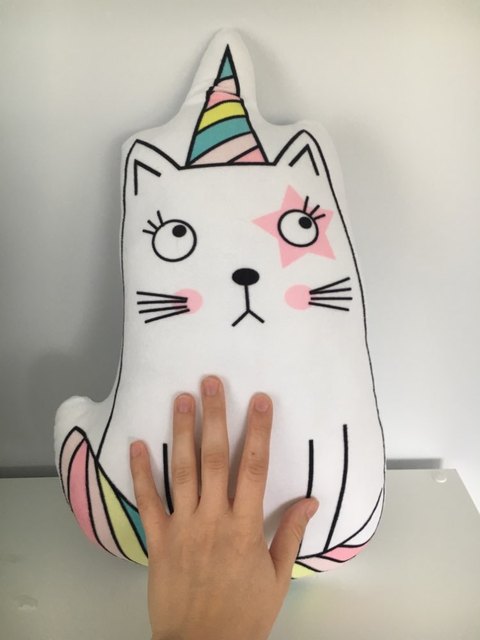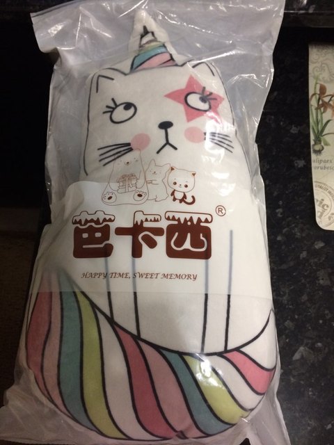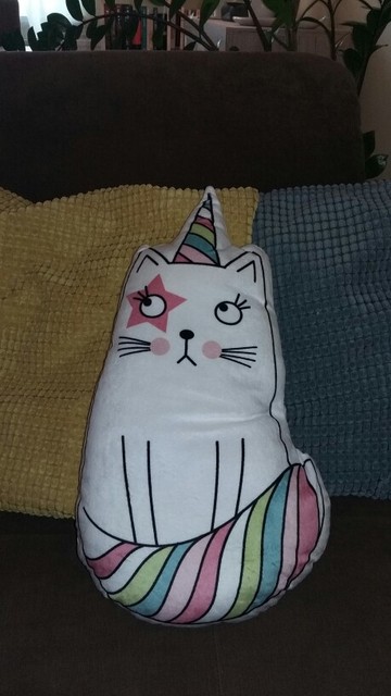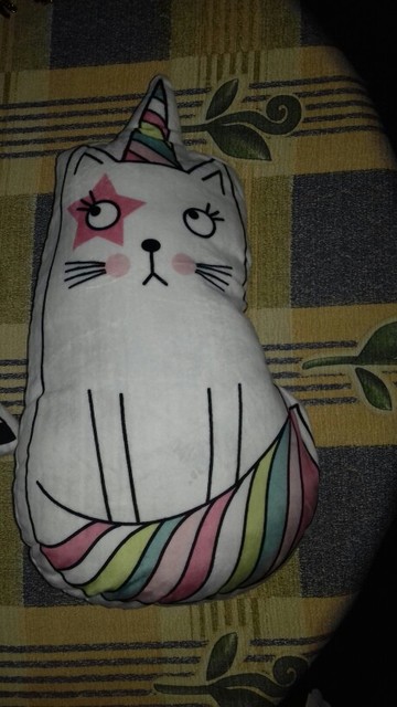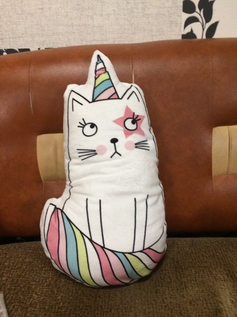 Product complies with the description. Pillow is cute, very fast shipping. RECOMMEND!