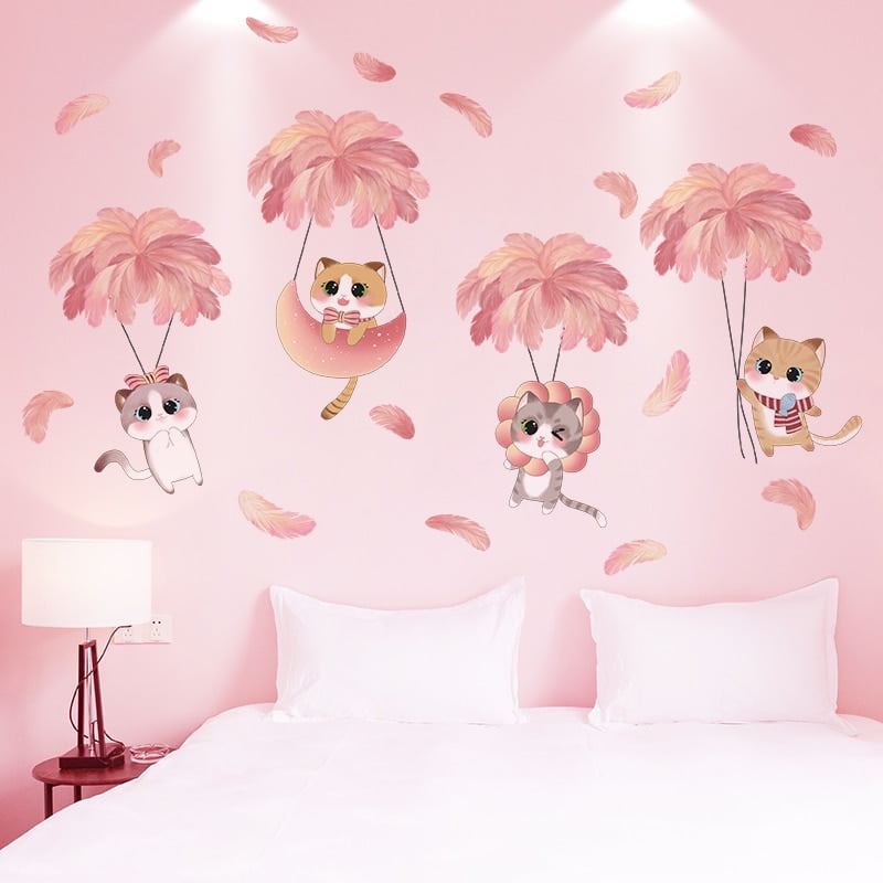 • Cute hand-painted style cats add charm to nurseries and kids’ rooms