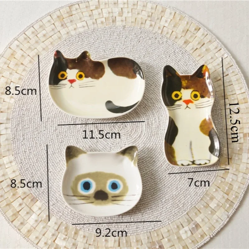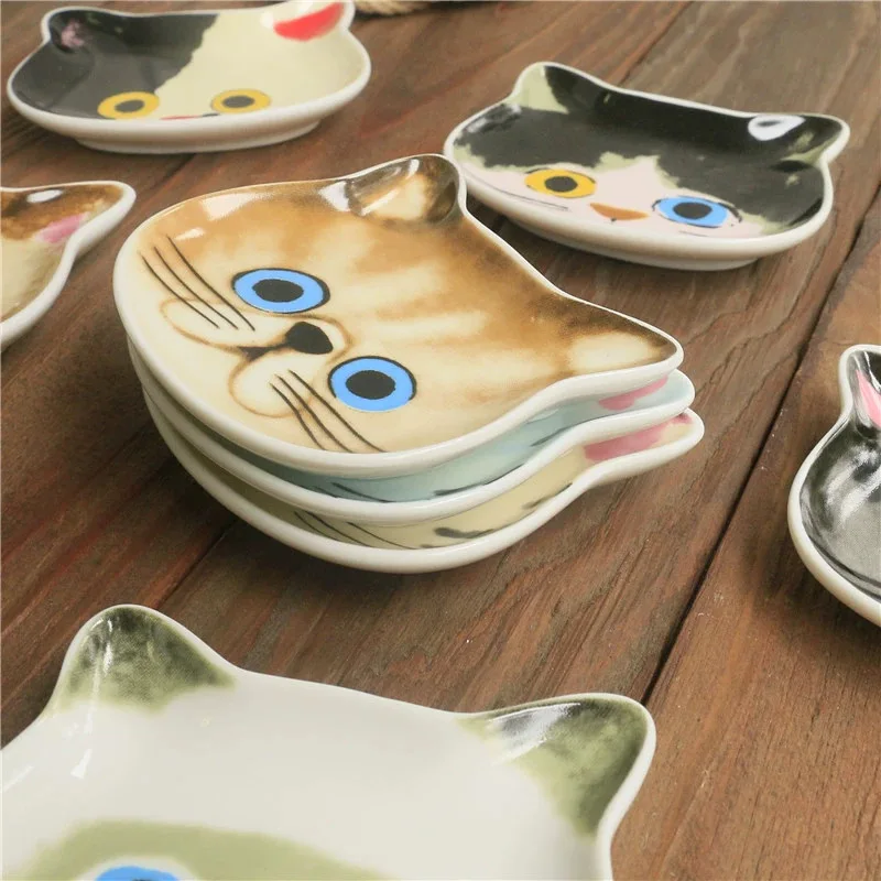 • The Japanese Cat Sauce Dish Ceramic Condiment Plate adds charm to everyday table settings