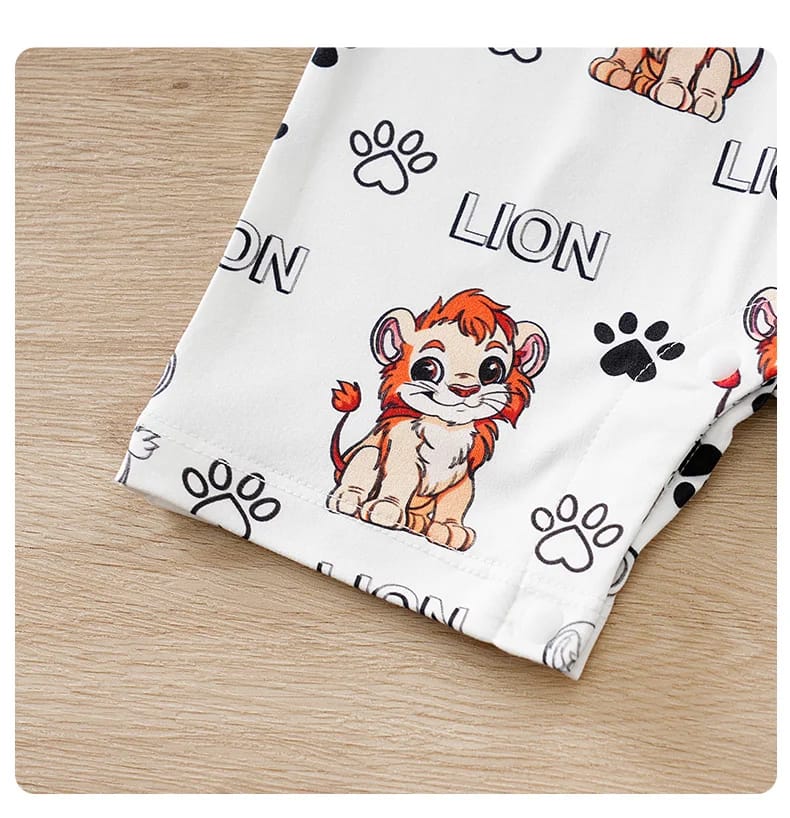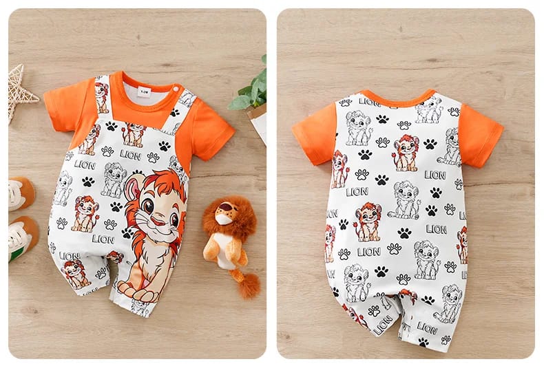 The Baby Lion Print Short Sleeve Romper combines adorable animal style with comfort and practicality, making it a lovely choice for little ones.