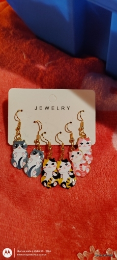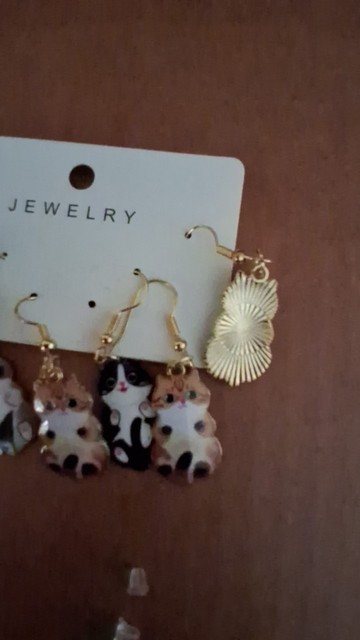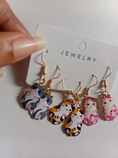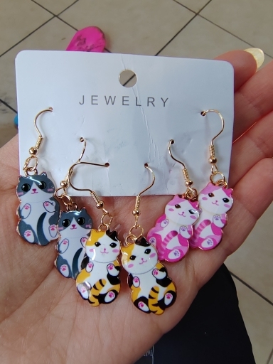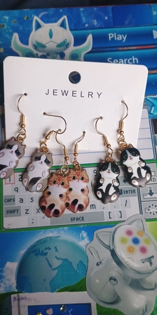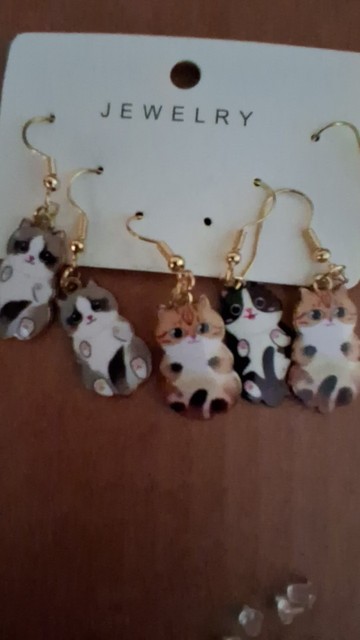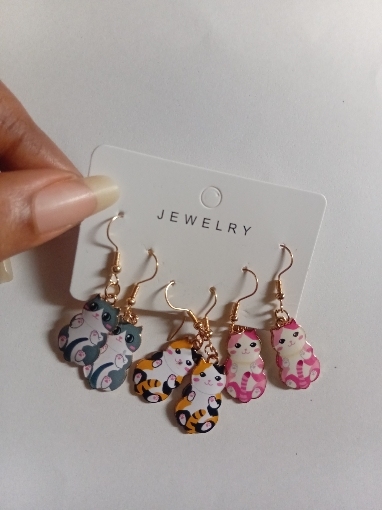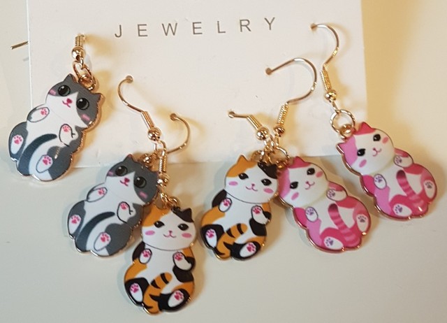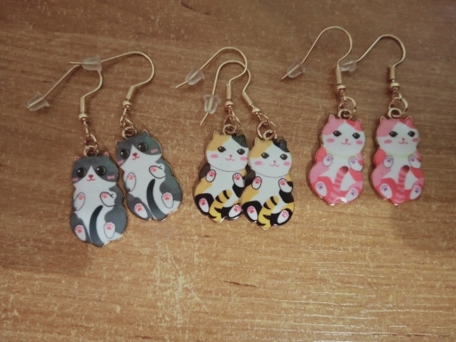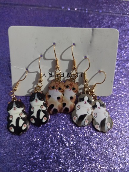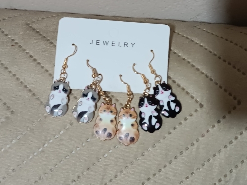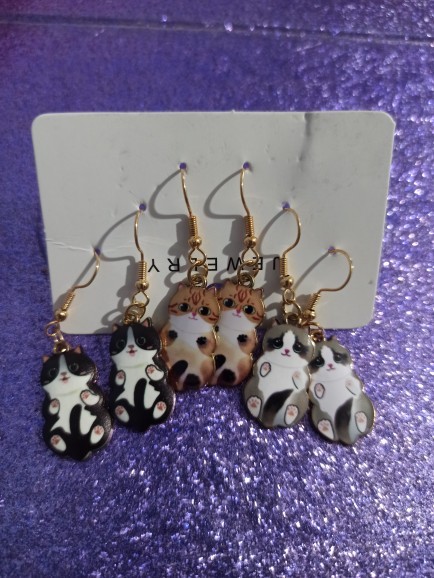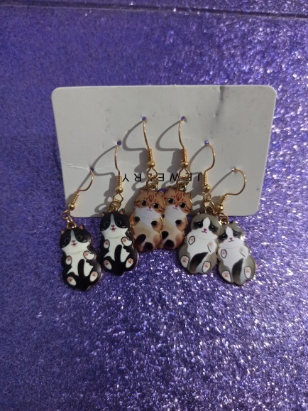 3 × Pairs of Cat Dangle Earrings (mixed designs)