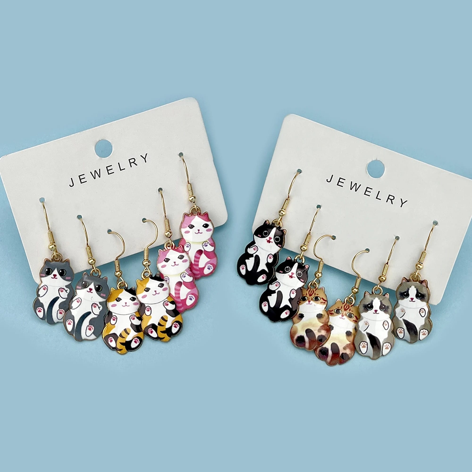 Cute Enamel Cat Dangle Earrings Set