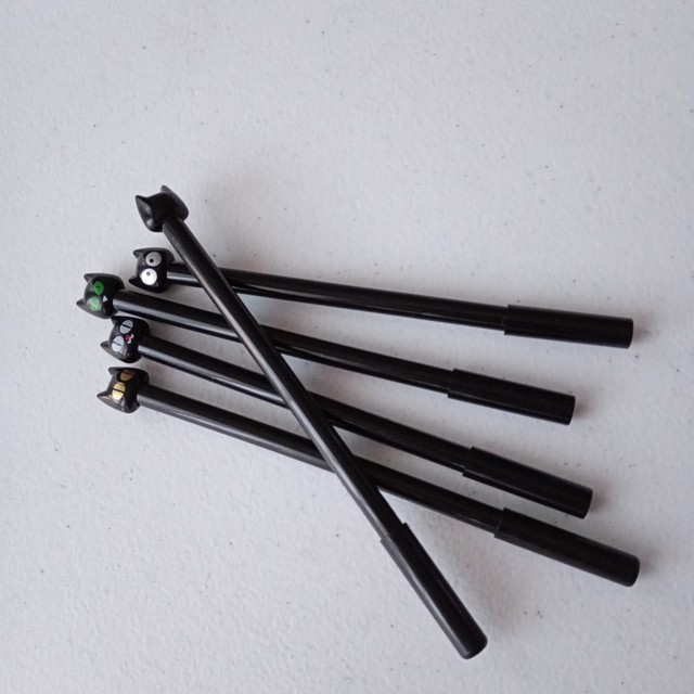 1 × Set of 4 Cute Black Cat Gel Pens (random designs)