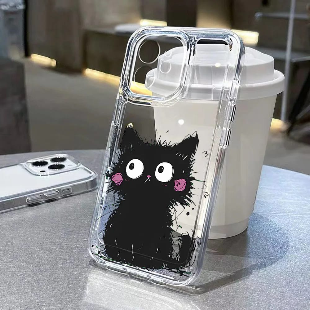 Cute Cartoon Cat Phone Case – Clear Silicone iPhone Cover