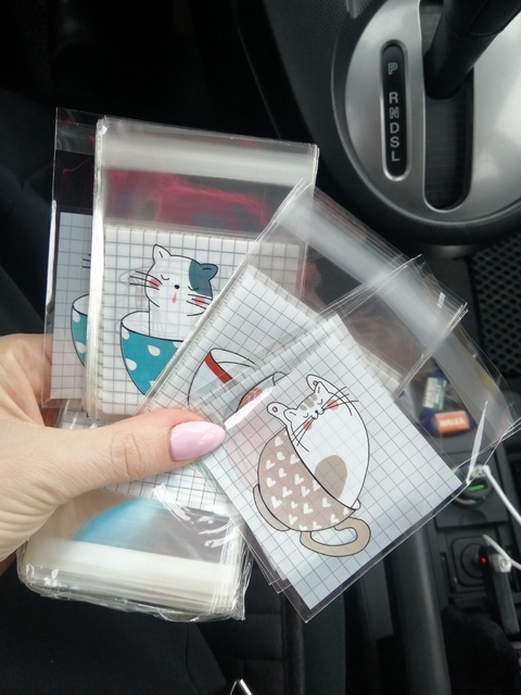 New 100pc six cat designs self adhesive bags (7cmx7cm) as specified. Decent material. Arrived within promised time.