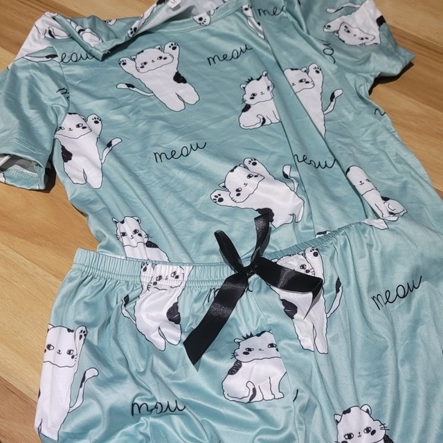 • Cute Cat Print Womens Pajama Set offers soft and breathable comfort