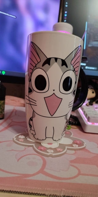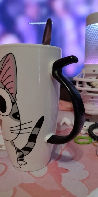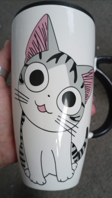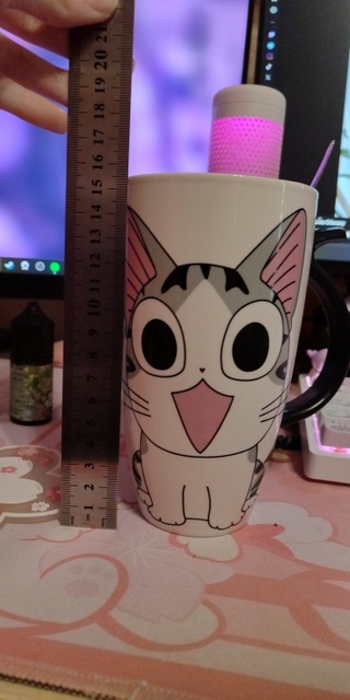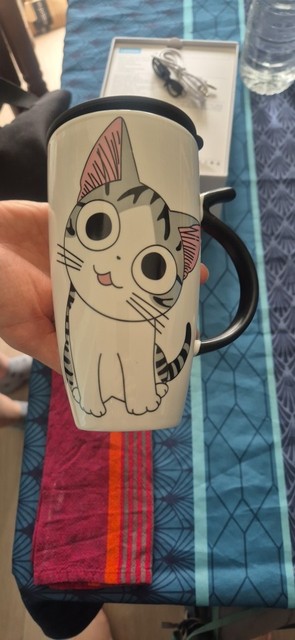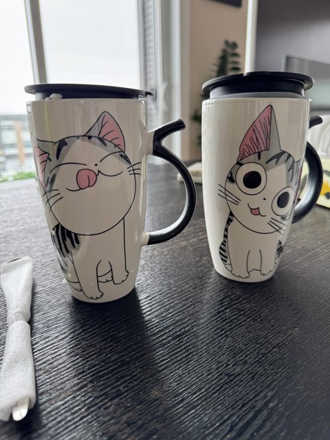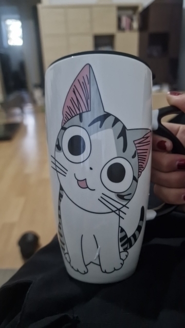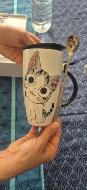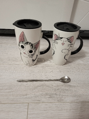 I liked this cup so much that I bought it twice; the first one broke accidentally. The print is of high quality, the spoon fits perfectly in size, it is very thin and light. I don’t use the lid; I’m not very confident in its sealing as it was difficult to drink from it. It’s purely a way to preserve heat or protect against mosquitoes entering the drink – just what I need. The cup has a comfortable handle for holding, and the cup itself is not super heavy even when fully filled. The package was packed very well, wrapped in a bunch of air-filled bags and inside a foam box. In short, I’m very pleased with the cup, go for it, you won’t regret it. ❤️
