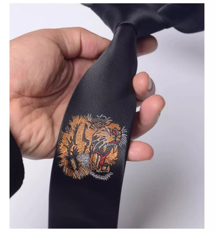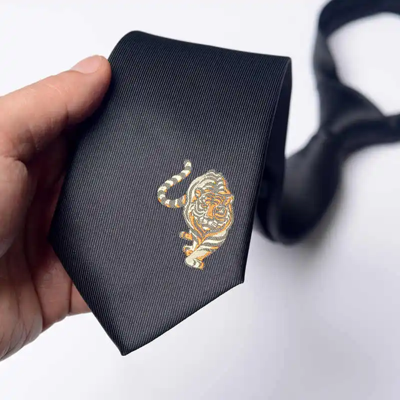 • Embroidered Tie – Tiger features a bold feline inspired design
