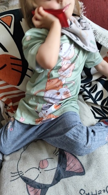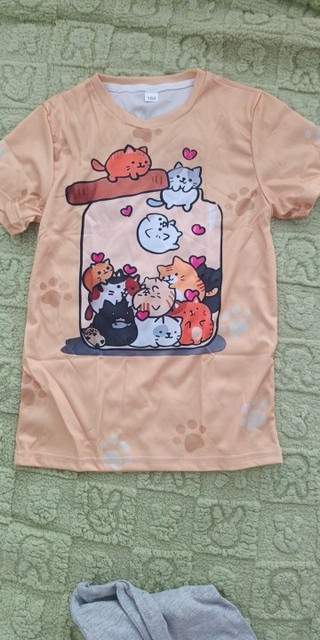 this is 150, my son wears Polish 134. slightly slippery blouse, clear colors. cat fan, enough for the season, the child is satisfied. the boy will wear it.