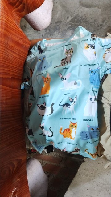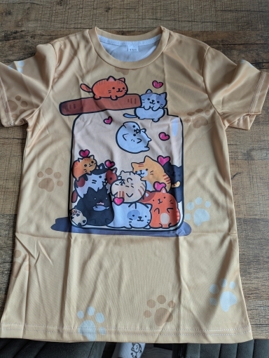 It fits well and someone here didn’t want to take it off right away. I definitely recommend this shirt. especially for a cat lover.