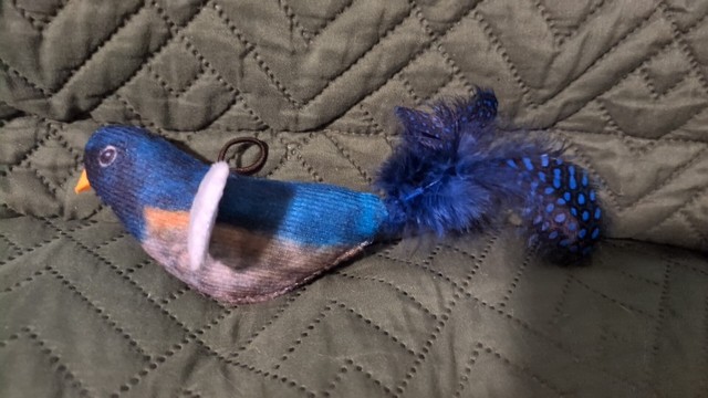 Cat absolutely loves the toy! Plays with it for long periods of time. Very ingenious system for sliding the bird toy out of reach for nighttime.