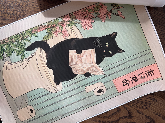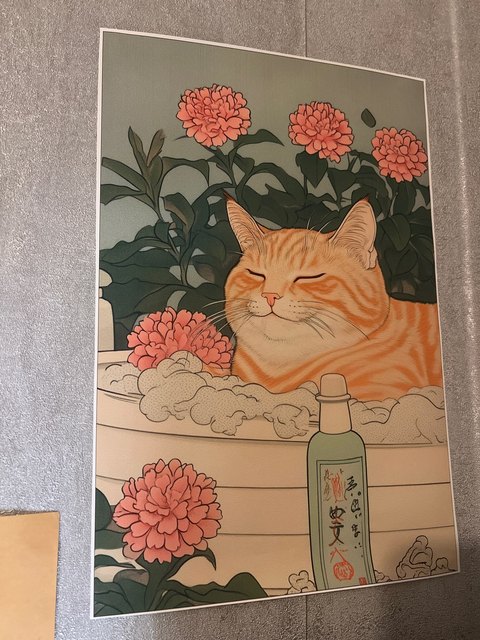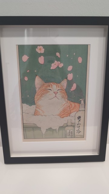 This looks way more expensive than the price, printed on nice canvas, have it hanging in my bathroom – so relaxing! Be the cat!