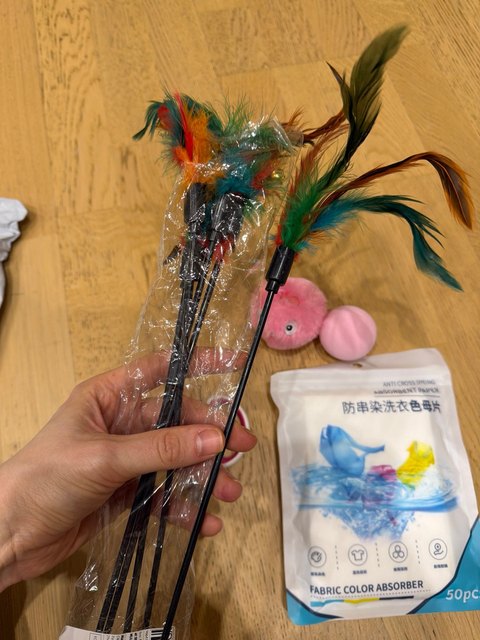So many feathers with bells as a backup. Very good price, you can also give one or two to other cat owners as gifts.