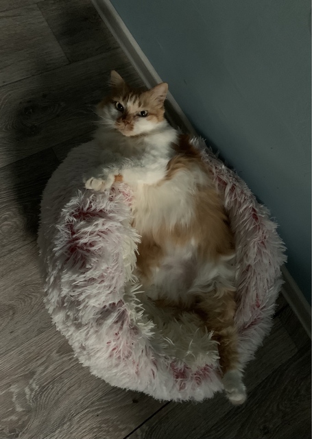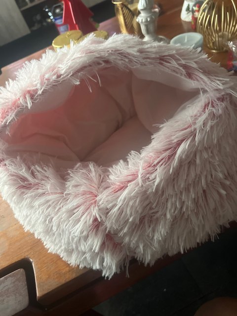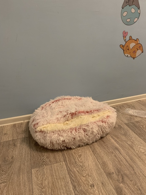 The cat weighs 4 kg, took d-50cm. a bit small, of course. Overall, a good lounger, tightly stuffed, the top part without a frame – inside there is plush fabric similar to 250gsm paper. If your pet loves a house-like house, then it’s better to look for something else. and yes, I recommend it beautiful combination of raspberry and white